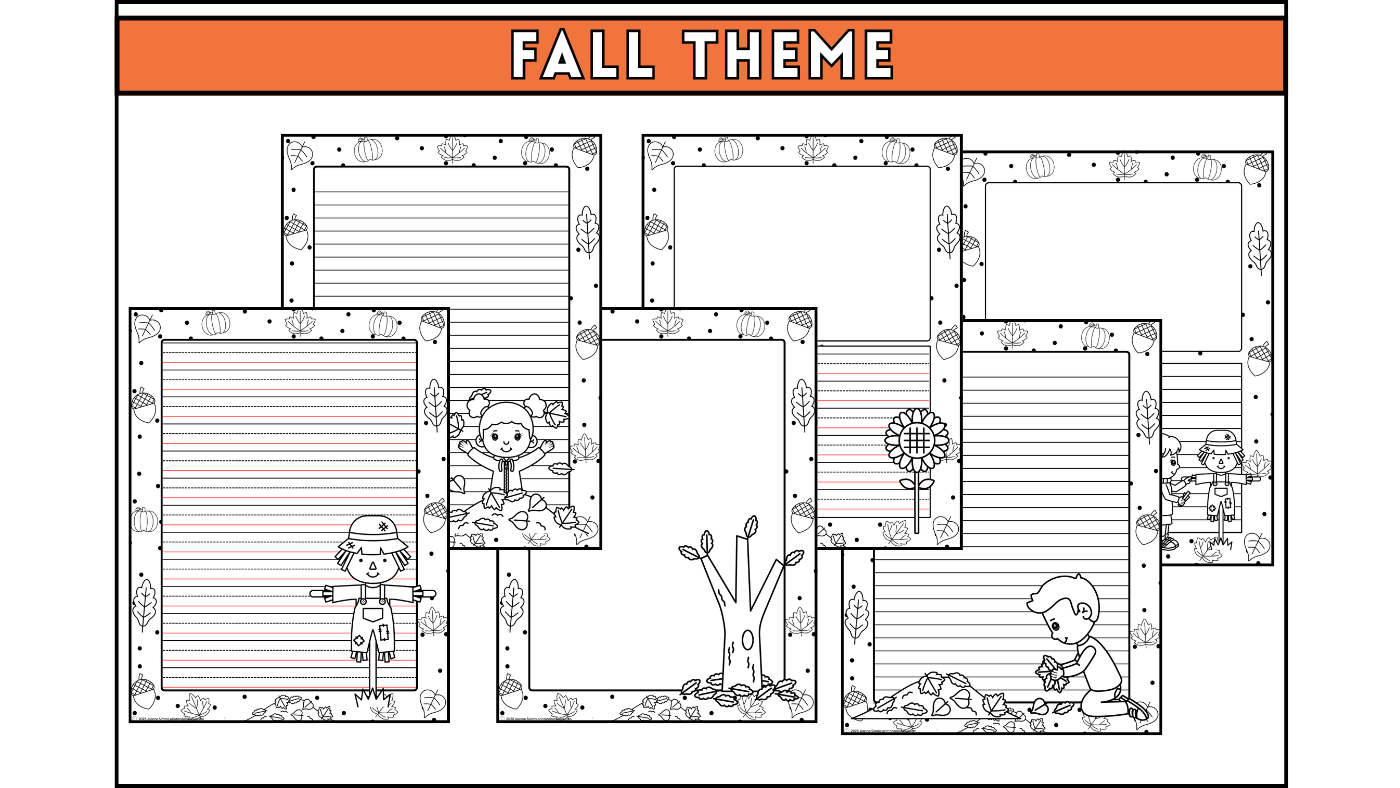 A pack of Fall themed writing paper for kids, that will add a little seasonal creativity into the classroom. Featuring cheerful scarecrows, pumpkins, and colorful leaves, this seasonal paper adds a special touch to your writing centers and helps students feel inspired as they write.